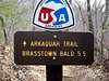 The trail crosses GA 180 at Jack's Gap, near the 180 spur. It runs parallel to the road to the top of Brasstown Bald, and there are 40 switchbacks. It comes in at the parking area, with a 1/2 mile and 500' left to go.