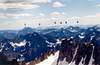Silver Star Glacier, via Silver Star Creek This route attains the glacier at or near its toe and climbs directly up to the col between the peaks with numerous variations possible. Easy snow on the glacier and Class 3-4 rock from the col to the summit.